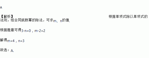 已知8a3bm÷8anb2=b2,那么m,n的取值为( )