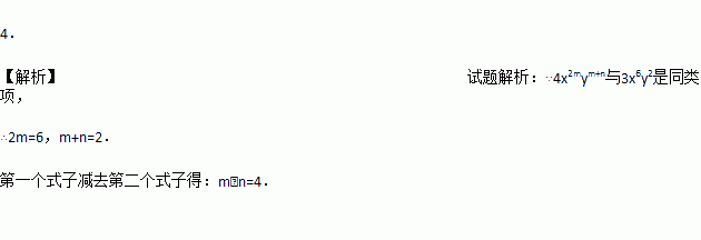 已知4x2mym+n与3x6y2是同类项,则m﹣n= .