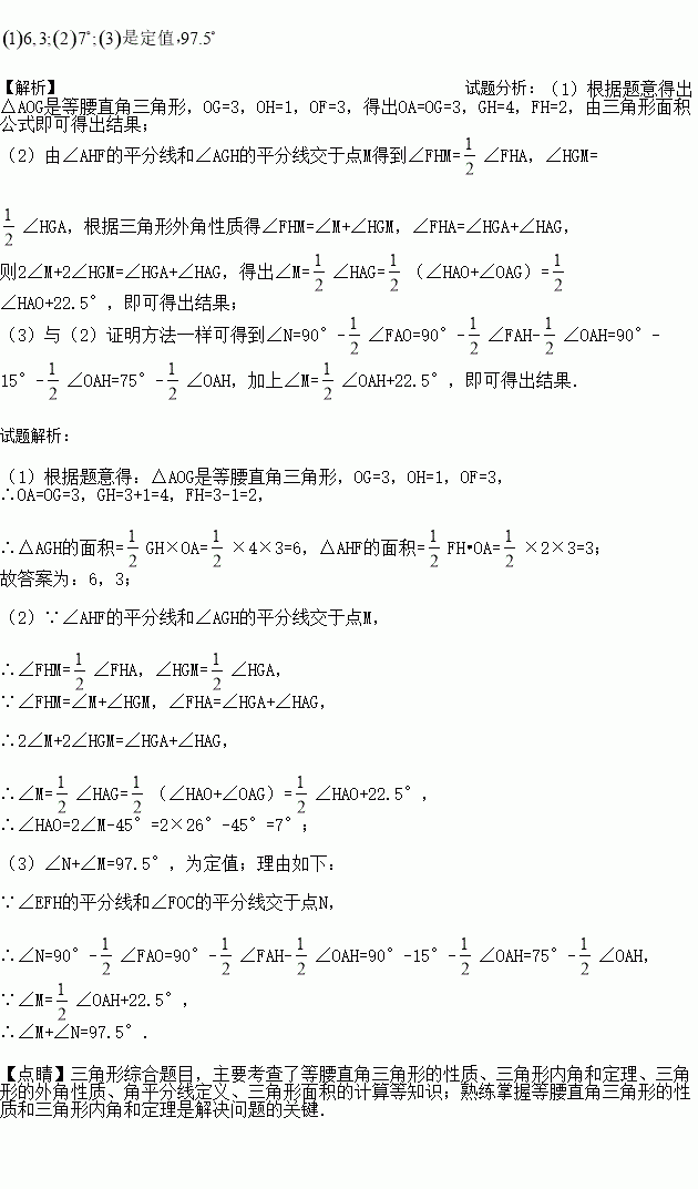(3)如图2,设∠AHF的平分线和∠AGH的平分线交于点M,设∠EFH的平分线和∠FOC的平分线交于点N,设∠HAO=x°(0<x<60) ,试探索∠N+∠M的和是否为定值,若不是,请说明理由;若是定值,请直接写出此值.