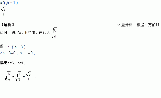 设a,b为实数,且满足(a–3)2+(b–1)2=0,求的值.