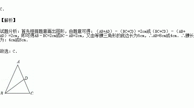 A.4cm B.8cm C.4cm或8cm D.以上都不对