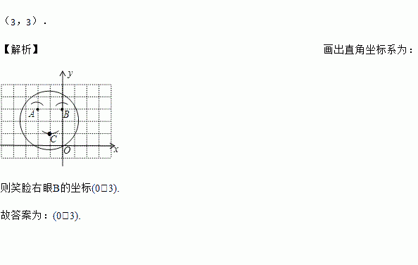 如图,把“QQ”笑脸放在直角坐标系中,已知左眼A的坐标是(﹣2,3),嘴唇C点的坐标为(﹣1,1),则将此“QQ”笑脸向右平移3个单位后,右眼B的坐标是 .