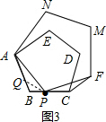 (3)如图3,五边形ABCDE为正五边形,点P是BC上任意一点,五边形APFMN也是正五边形.连结CF,直接写出∠PCF的度数;