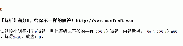 某次知识竞赛共有25道题,某一题答对给5分,打错或不答都扣3分,小明得了85分,那么他答对的题数是( )