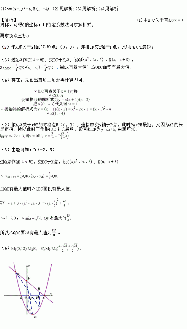 经过A(0,-3),B(-1,0),且抛物线对称轴为直线,E![]()