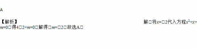 若关于x的方程x2+x+m=0的一个根为–2,则m的值为( )