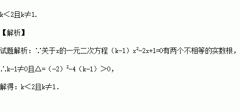 关于x的一元二次方程(k-1)x2-2x+1=0有两个不相等的实数根,则实数k的取值范围是 .