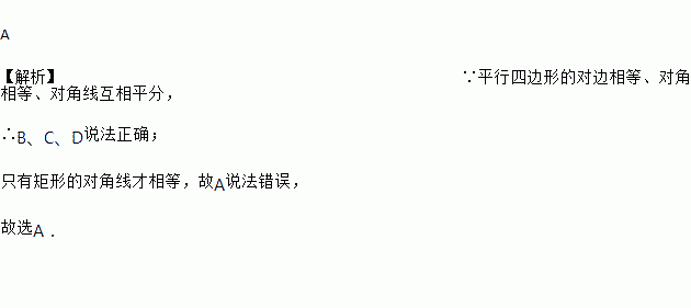 下面关于平行四边形的说法中错误的是( )