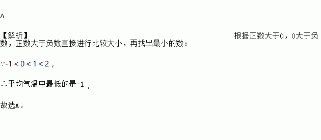 某地连续四天每天的平均气温分别是:1℃,-1℃,0℃,2℃,则平均气温中最低的是( )