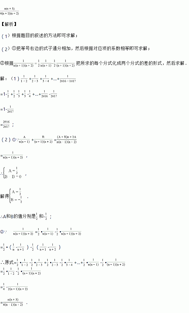试着把上面和式的每一项都裂成两项,注意观察其中的规律,求出上面的和,并直接写出