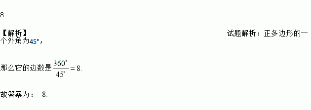 如果正多边形的一个外角为45°,那么它的边数是_________.