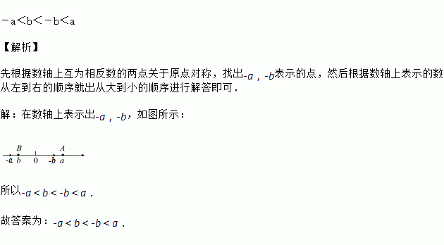 如图所示,有理数a,b在数轴上对应的点分别为A,B,则a,-a,b,-b按由小到大的顺序排列是________________.