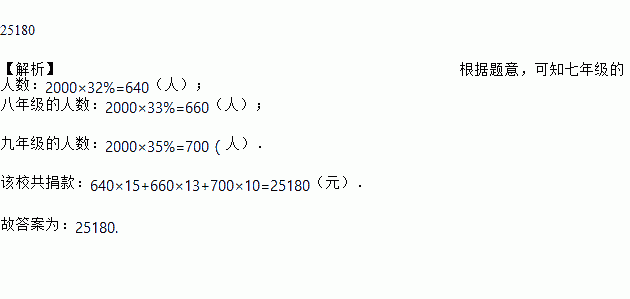 下图是根据某中学为地震灾区捐款情况而制作的统计图,已知该校在校学生2000人,请你根据统计图计算该校共捐款________元。