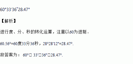60.56°=______度_____分_____秒,28°28′12"=_________°;
