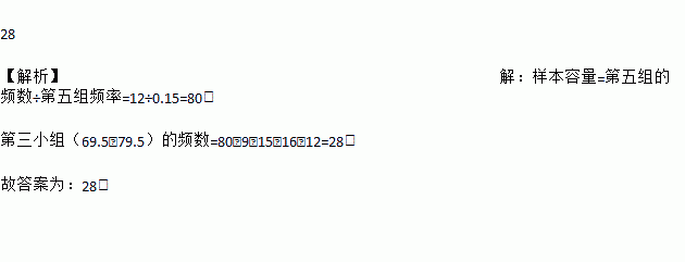 在一次抽样调查中收集了一些数据,对数据进行分组,绘制了频数分布表,由于操作失误,绘制时不慎把第三小组的频数弄丢了,现在只知道最后一组(89.5~99.5)出现的百分比为15%,由此可知丢失的第三小组的频数是________