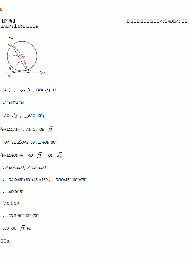 如图,以点A(1, )为圆心的⊙A交y轴正半轴于B、C两点,且,点D是⊙A上第一象限内的一点,连接OD、CD.若OD与⊙A相切,则CD的长为( )