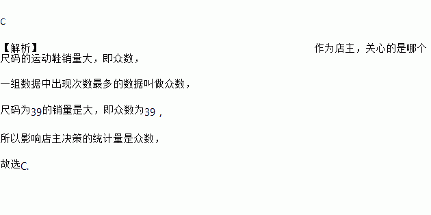 该店主决定本周进货时,增加一些39码的运动鞋,影响该店主决策的统计量是( )