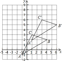(2)由图可知A′(1,2),B′(6,5),C′(3,6).