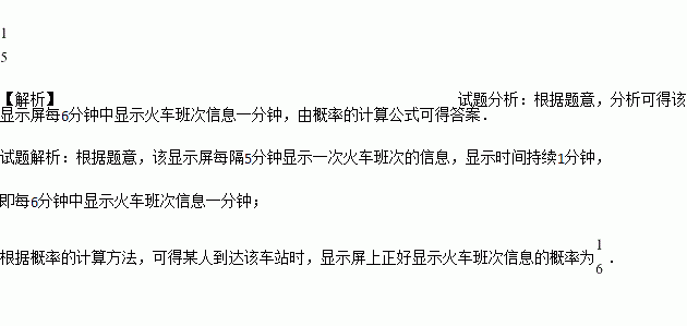 某火车站的显示屏,每隔4分钟显示一次火车班次的信息,显示时间持续1分钟.某人到达该车站时,显示屏正好显示火车班次信息的概率是________.