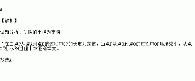 如图,在直径为AB的半圆O上有一动点P从A点出发,按顺时针方向绕半圆匀速运动到B点,然后再以相同的速度沿着直径回到A点停止,线段OP的长度d与运动时间t之间的函数关系用图象描述大致是