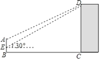 如图,某中学在主楼的顶部D和大门A的上方之间挂一些彩旗,经测量,大门距主楼的距离,在大门处测得主楼顶部的仰角是,而当时测倾器离地面求:学校主楼CD的高度结果精确到