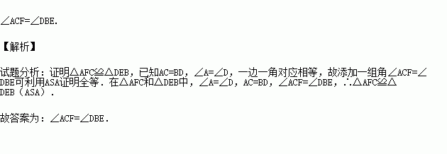 如图,已知AC=BD,∠A=∠D,请你添一个直接条件, ,使△AFC≌△DEB.