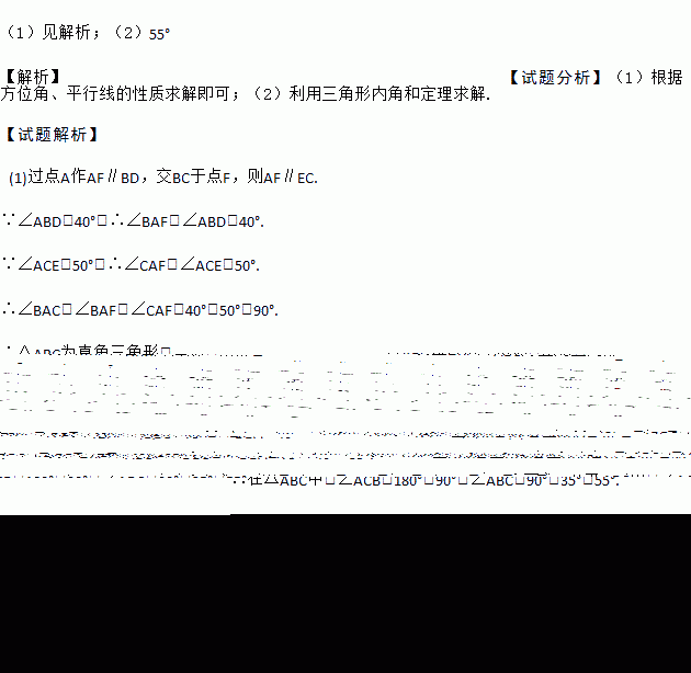 如图,A点在B点的北偏东40°方向,C点在B点的北偏东75°方向,A点在C点的北偏西50°方向.