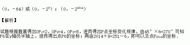 如图,在平面直角坐标系中,已知点P0的坐标为(1,0),将线段OP0按逆时针方向旋转45°,再将其长度伸长为OP0的2倍,得到线段OP1;又将线段OP1按逆时针方向旋转45°,长度伸长为OP1的2倍,得到线段OP2;如此下去,得到线段OP3,OP4,…OPn(n为正整数).那么点P6的坐标是 ,点P2014的坐标是 .