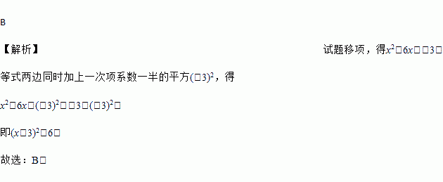 A. (x-3)2=-3 B. (x-3)2=6 C. (x-3)2=3 D. (x-3)2=12