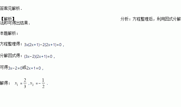 解方程:3x(2x+1)=4x+2.