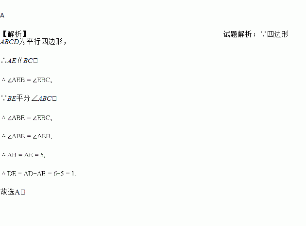 如图,平行四边形ABCD中,BE平分∠ABC交AD于E点,已知AB=5,AD=6,则DE长为( )