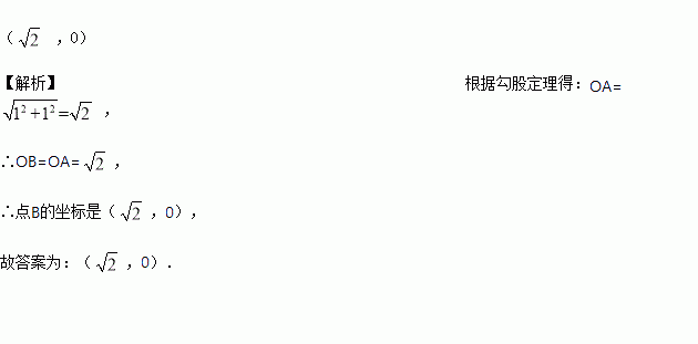 如图,△AOB是等腰三角形,OA=OB,点B在x轴的正半轴上,点A的坐标是(1,1),则点B的坐标是__.