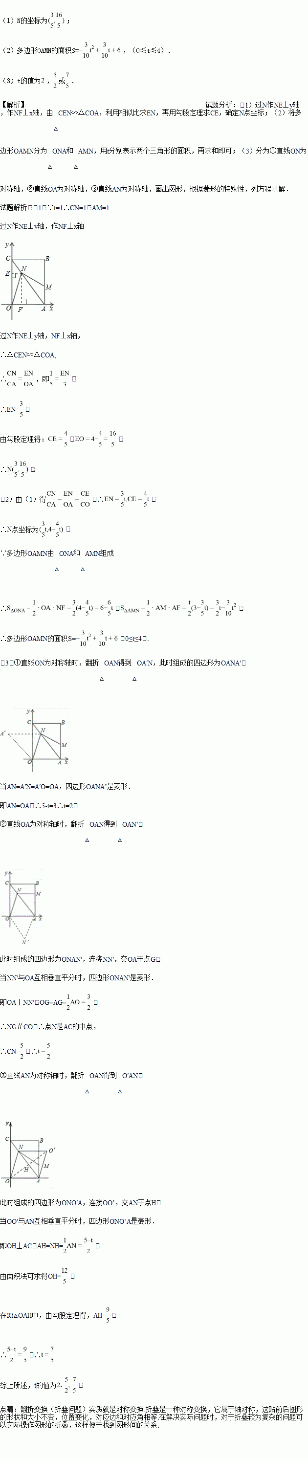 (3)t为何值时,以△OAN的一边所在直线为对称轴翻折△OAN,翻折前后的两个三角形所组成的四边形为菱形?