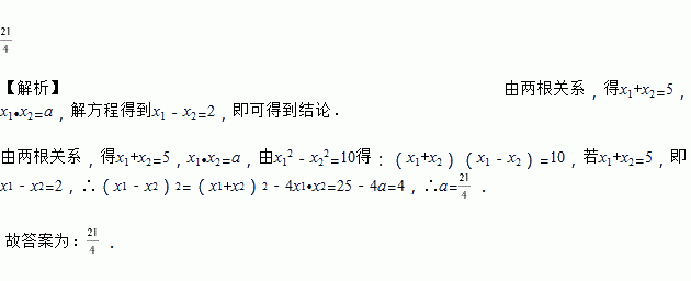已知x1,x2是关于x的一元二次方程x2-5x+a=0的两个实数根,且