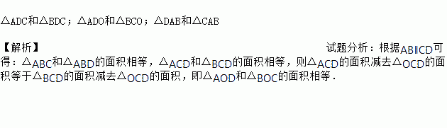 如图,AB∥CD,AD不平行于BC,AC与BD相交于点O,写出三对面积相等的三角形是___________________.