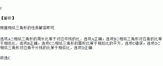 A. 相似三角形的周长比等于对应中线的比 B. 相似三角形对应高的比等于相似比