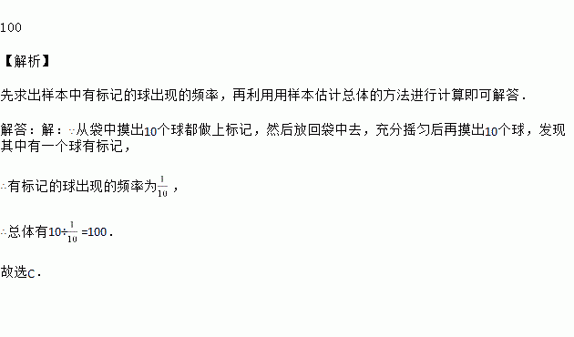 为了估计不透明的袋子里装有多少白球,先从袋中摸出10个球都做上标记,然后放回袋中去,充分摇匀后再摸出10个球,发现其中有一个球有标记,那么你估计袋中大约有_____个白球.