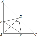 分析:首先连接BD,由已知等腰直角三角形ABC,可推出BD⊥AC且BD=CD=AD,∠ABD=45°再由DE丄DF,可推出∠FDC=∠EDB,又等腰直角三角形ABC可得∠C=45°,所以△EDB≌△FDC,从而得出BE=FC=3,那么AB=7,则BC=7,BF=4,再根据勾股定理求出EF的长.![]()