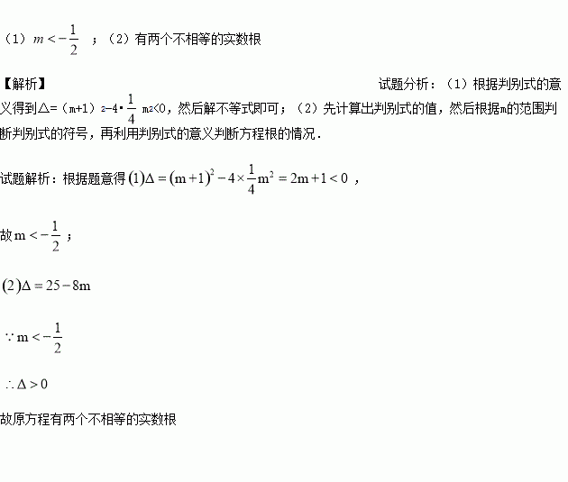 (2)判断关于的方程是否有实数根。