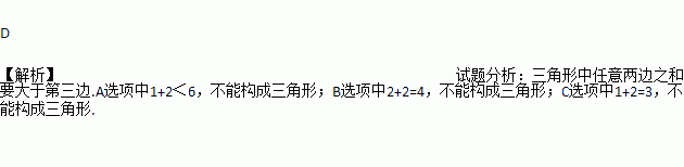 下列每组数分别表示三根木棒的长度,将它们首尾连接后,能摆成三角形的一组是( )