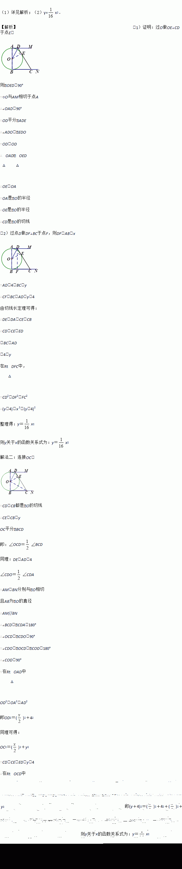 (2)设AD=4,AB=x (x>0),BC=y (y>0).求y关于x的函数解析式.
