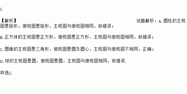 下列几何体中,同一个几何体的主视图与俯视图不同的是( )