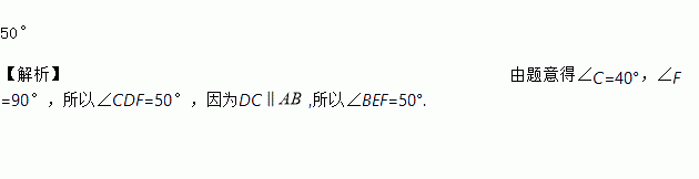 如图,在?ABCD中,∠C=40°,过点D作CB的垂线,交AB于点E,交CB的延长线于点F,则∠BEF的度数为____.