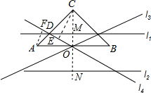 过C作CM⊥l1,垂足分别为M、N,交AB于O,