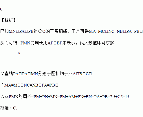 已知如图,、切于、,切于,交于;若,则的周长是( )