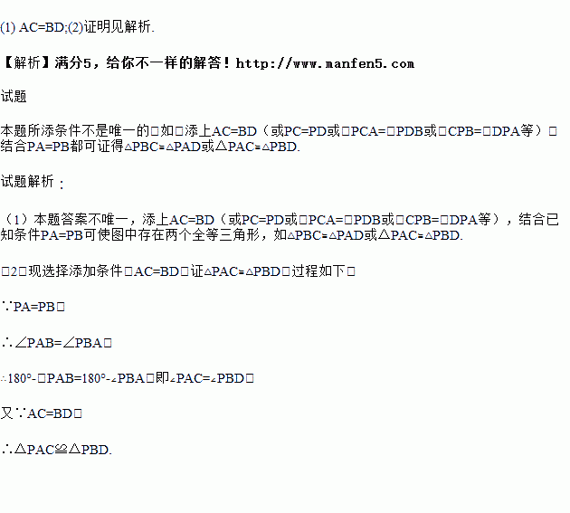 (1)请添加一个条件: ,使图中存在两个三角形全等.