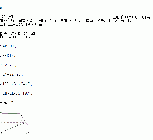 如图,若AB//CD,则∠B、∠C、∠E三者之间的关系是( )