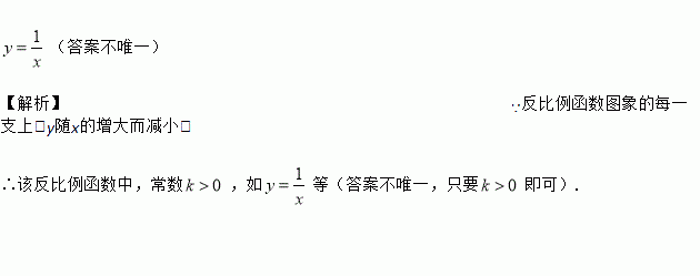 (答案不唯一) 【解析】∵反比例函数图象的每一支上,y随x的增大而减小, ∴该反比例函数中,常数,如等(答案不唯一,只要即可).