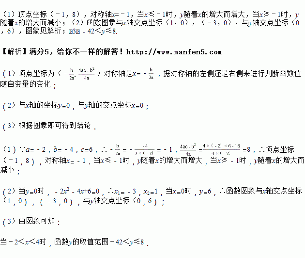 (1)求出函数的顶点坐标、对称轴以及描述该函数的增减性.