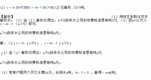 (3)若某户居民六月交水费31元,则用水多少吨?